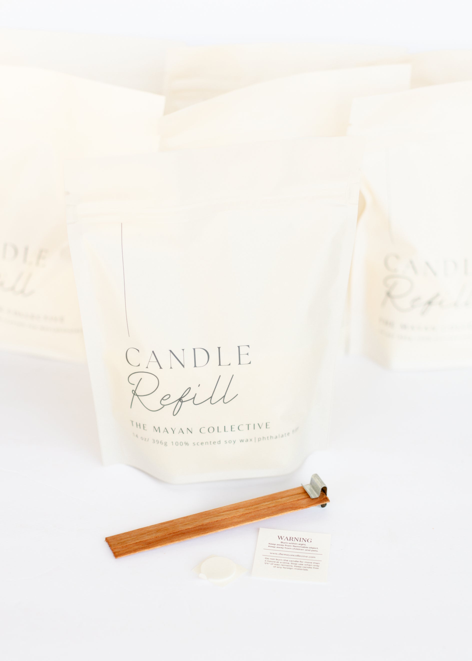 WARNING: This candle refill is specifically for our signature 14oz signature vessel from the Mayan Collective. Melted wax is hot. The Mayan Collective is not resposible for mishandeling of TMC products. Exercise caution with flames and hot wax. Do not ingest. This candle refill only works for a the Mayan Collective Signature vessel or a container that is 3" in diameter.